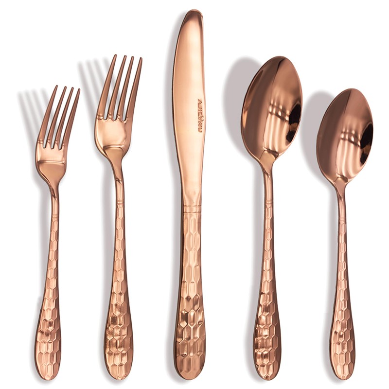 - 🌟🍴【MODERN AND ELEGANT】:AJIEVUW Silverware perfect mirror finished keeps these cutlery sets always shiny, No rough burrs, Nice shine and bring a high-grade and modern metallic texture. The curved design of the handle makes it more elegant, Specially honeycomb designed sharp serrated knives’ blades for cutting steak easily.