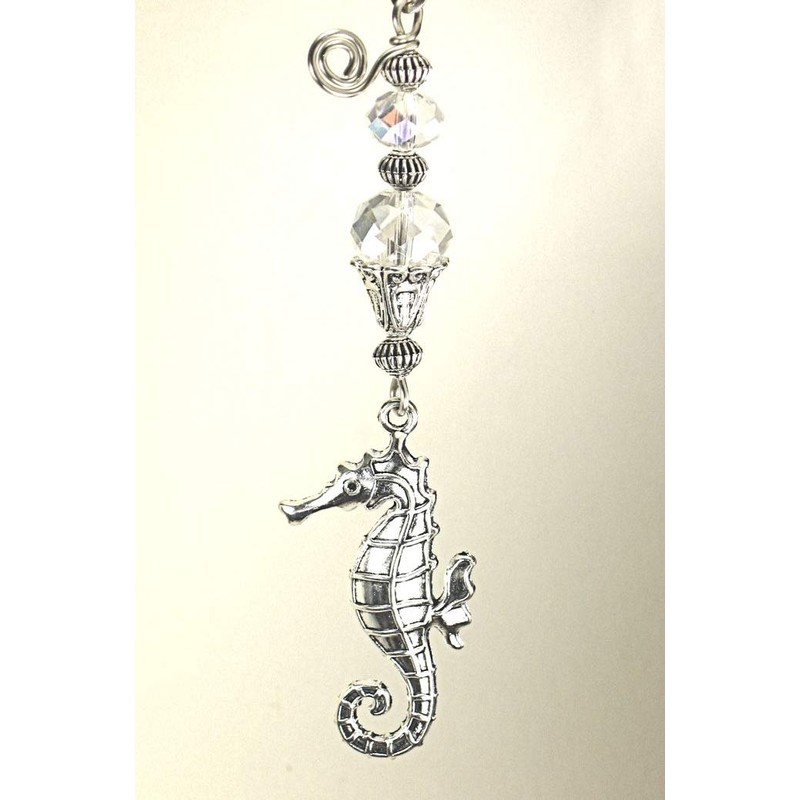 Silvery Raised Seahorse with Crystal Clear Faceted Glass Ceiling Fan Pull / Light Pull Chain