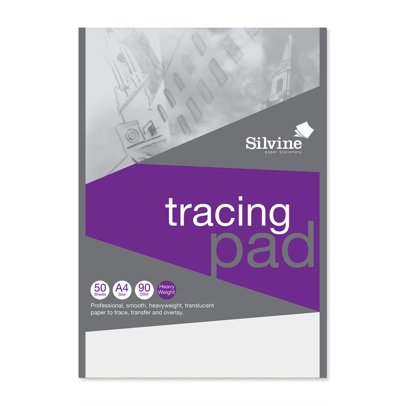 Silvine A4 Heavyweight 90gsm Professional Tracing Pad 50 Sheets, A4TPR