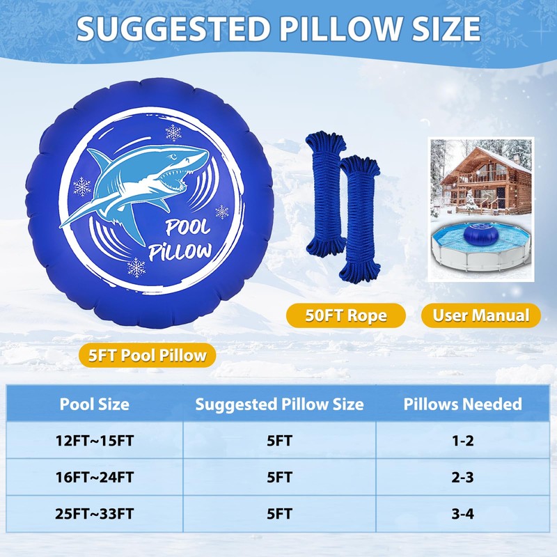 - 【Quick Inflation & Deflation】Thanks to the dual-valve system, inflating and deflating is 10x faster than traditional single-valve designs. No more struggling with pumps—set up your winter cover in minutes and store the pillow easily when spring arrives.