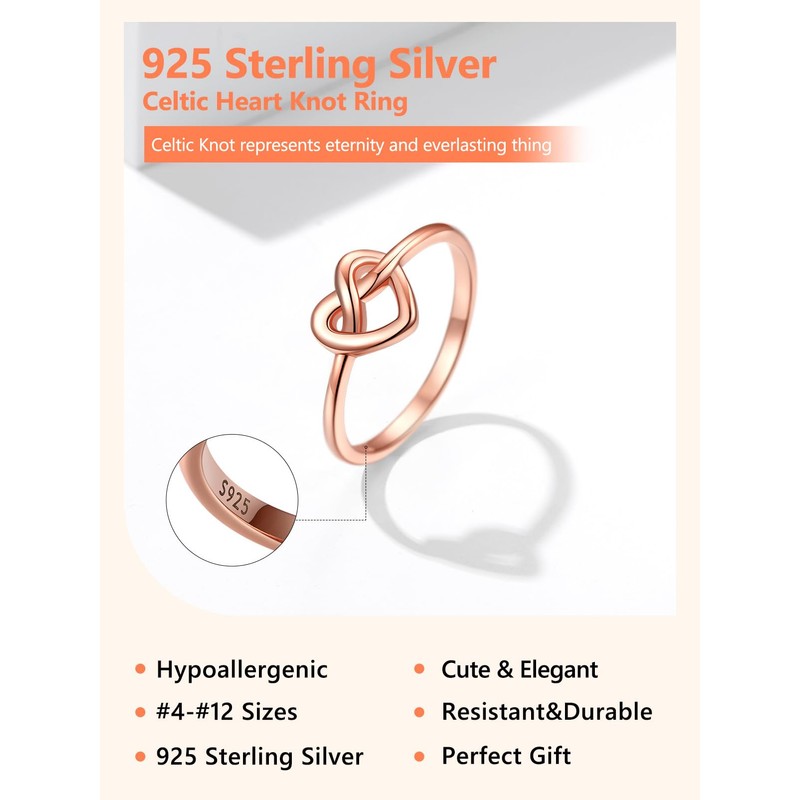 Silvora 925 Sterling Silver Knot Ring Rose Gold Promise Ring Heart Love Rings for Women Band Ring Size 9