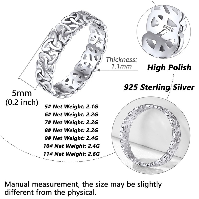 - ✦Sterling Silver Ring --- Dainty silver celtic knot rings for women, hypoallergenic & smoothy, very lightweight and comfortable to wear.
