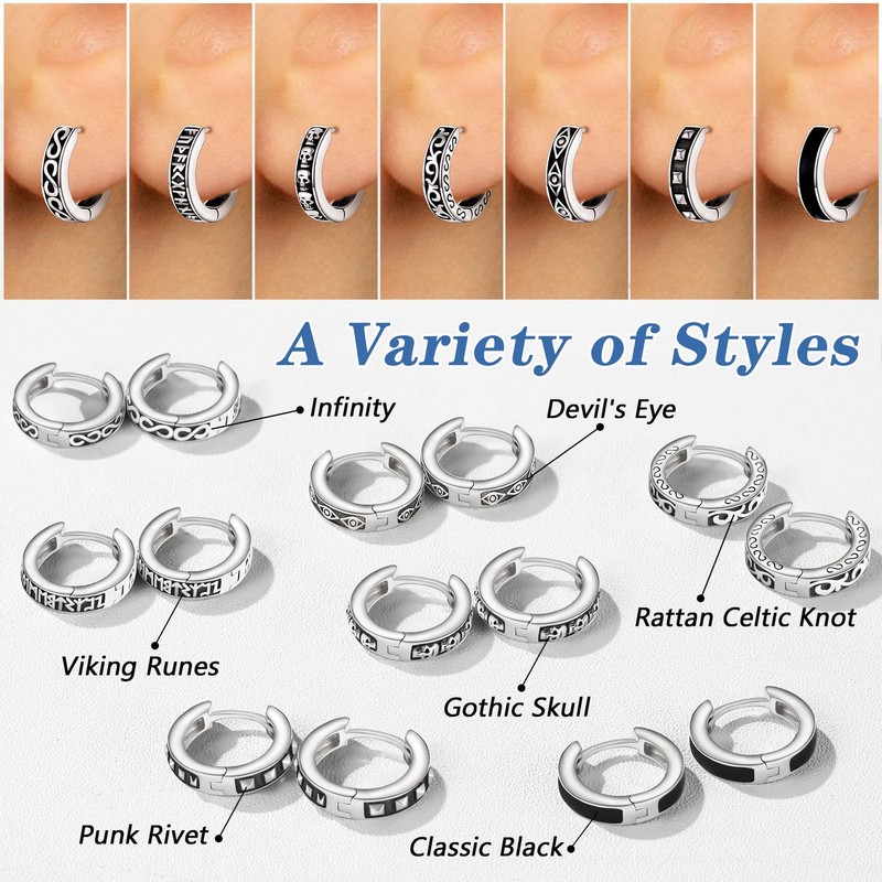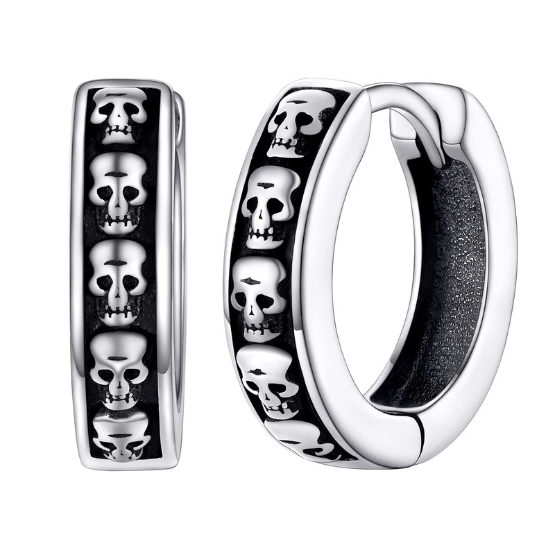- ⚡Gothic Skull Earrings⚡Vintage hinged huggies hoops earring for man woman, made by solid sterling silver, punk and retro design, perfect for everyday wearing or special occassions like birthday/party/halloween/christmas.