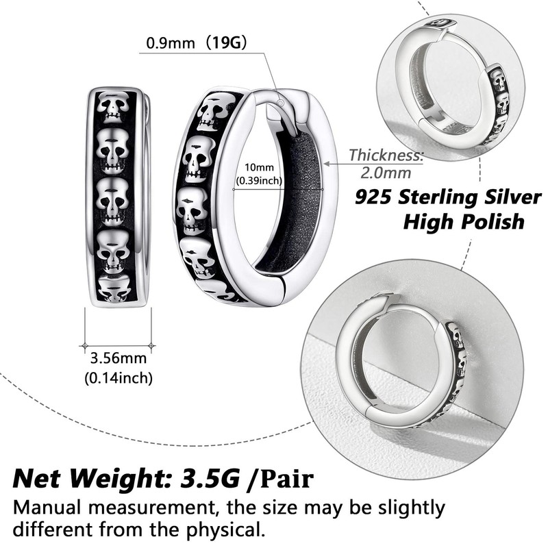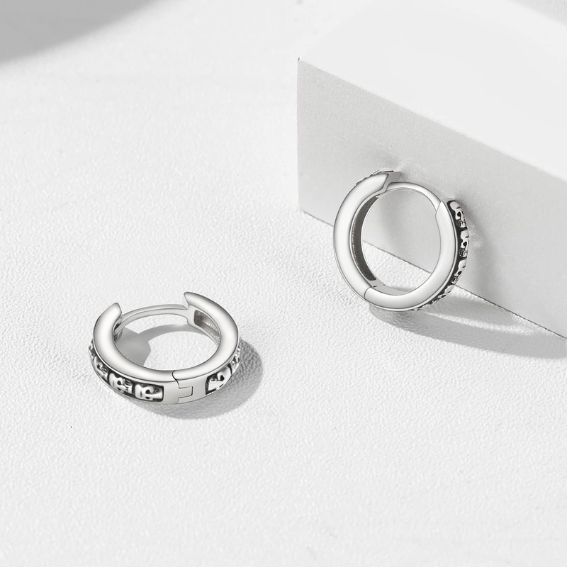 - ⚡Tiny Hoop Earrings⚡Antique sterling silver hoops earrings with gothic skull symbol, skin-frienly and no tarnish or corrosion issues, allergy-free, nickle-free, lead-free, very lightweight and comfortable to wear.