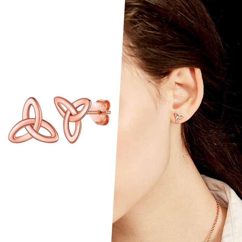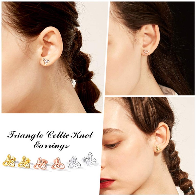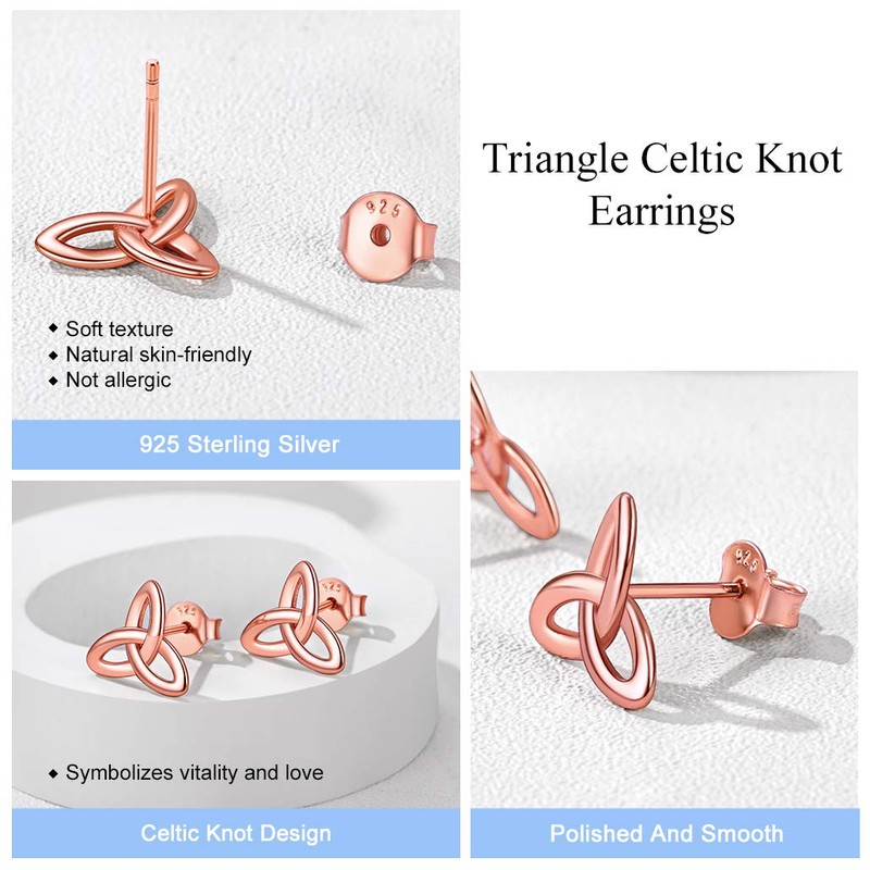 Silvora Rose Gold Ear Studs Womens Celtic Knot Earrings 925 Sterling Silver Triangle Knots Stud Earring for Mother Grandma