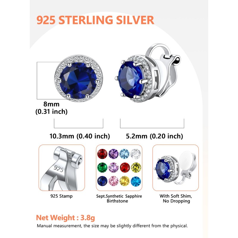 - No Piercing Earrings: Designed to be lightweight and easy to wear, with side grips that won't hurt if worn for long periods of time. The birthstone ear clips are perfect for those without pierced ears or those who don't like traditional earrings.