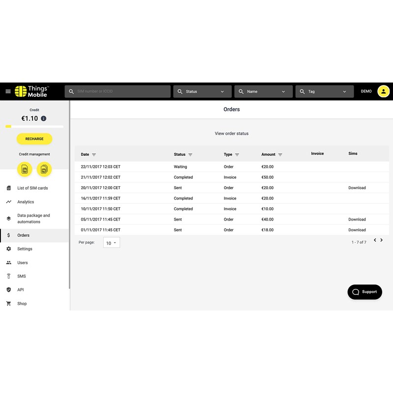 - Fixed IP on demand, VPN, sending and receiving SMS messages from the IoT portal