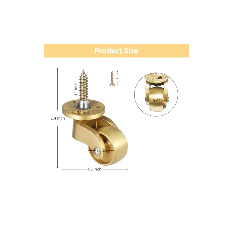 - Easy to install: Each set includes 4 brass universal caster wheels and 12 mounting screws.