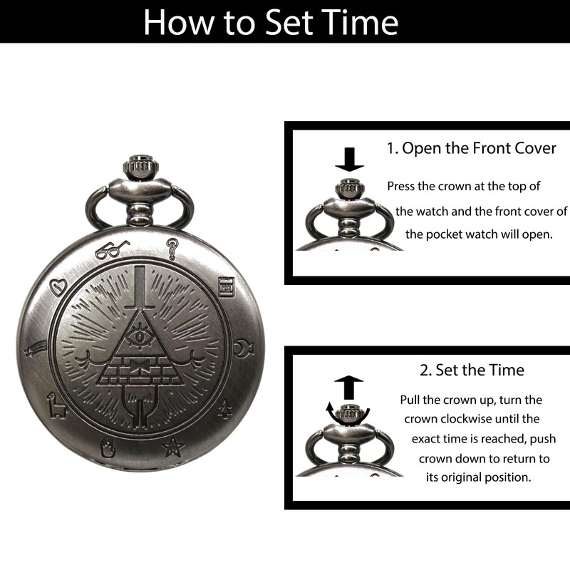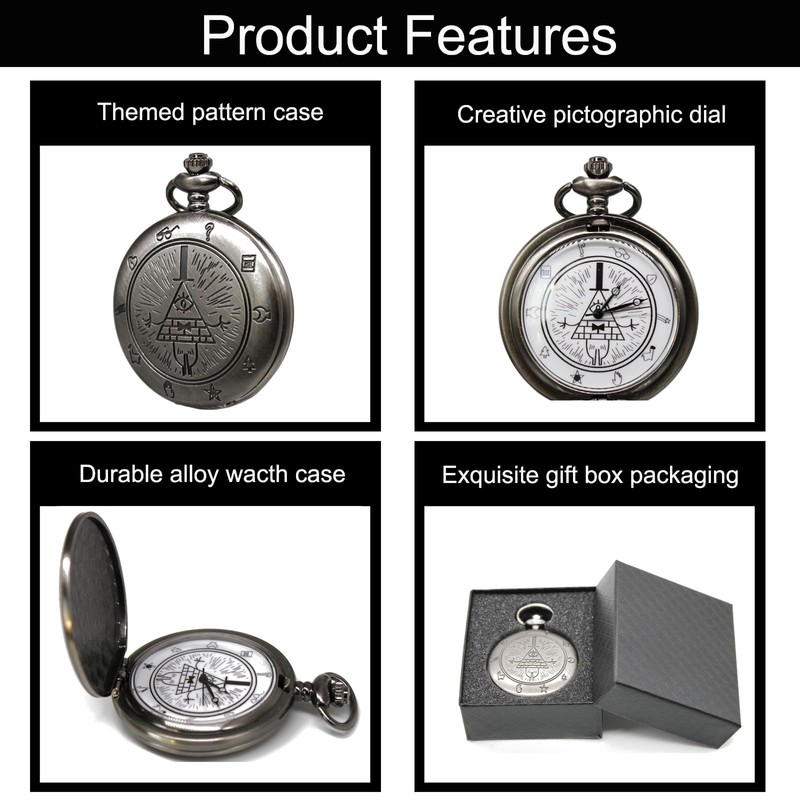 - 【Material】The Bill Cipher pocket watch features a high-quality quartz movement, shatter-proof resin lenses, anti-fall and anti-wear. Durable alloy watch case and chain, do not fade, wear-resistant and durable.