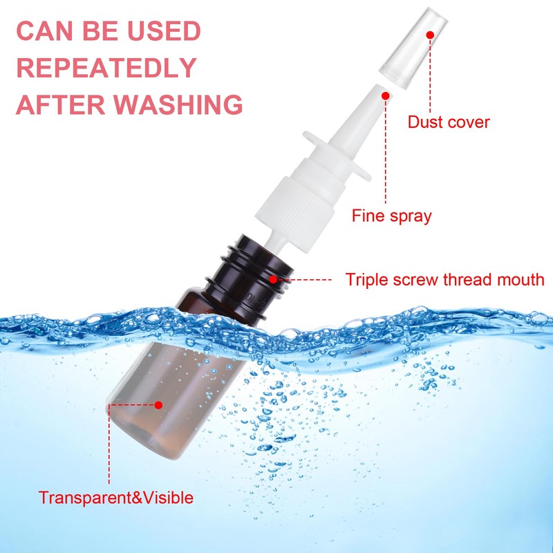 • 【Precision Nasal Spray Bottle】The atomizer nasal spray bottle specially designed for nasal spray, can also be used as a normal spray bottle to hold liquids, store medical water, lotions, perfumes, liquids, etc., with a plastic cover, fully sealed design , no need to worry about leakage. Small and transparent bottle, you can see how much liquid is left.