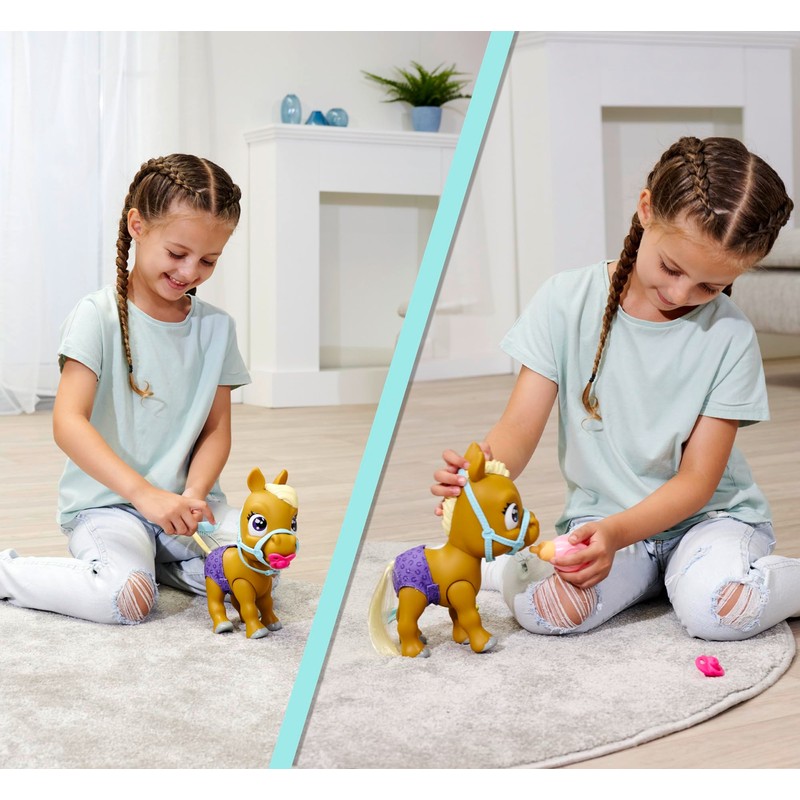 • Cute playmate - Hurray, a cute foal expands the Pamper Petz family! Like its Pamper Petz siblings, it can drink properly and wears a nappy that discolours when wet