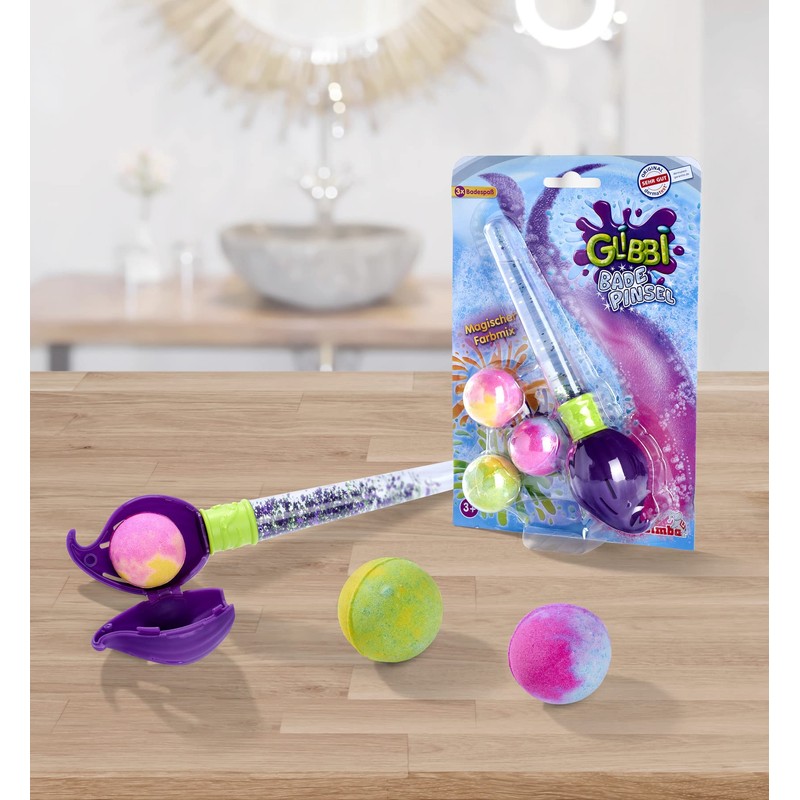Simba Glibbi 105953570 Bath Brush, Brush with Three Bath Bombs, Colours the Water Colourful, Magic Wand for the Bathtub, Bath Toy, from 3 Years