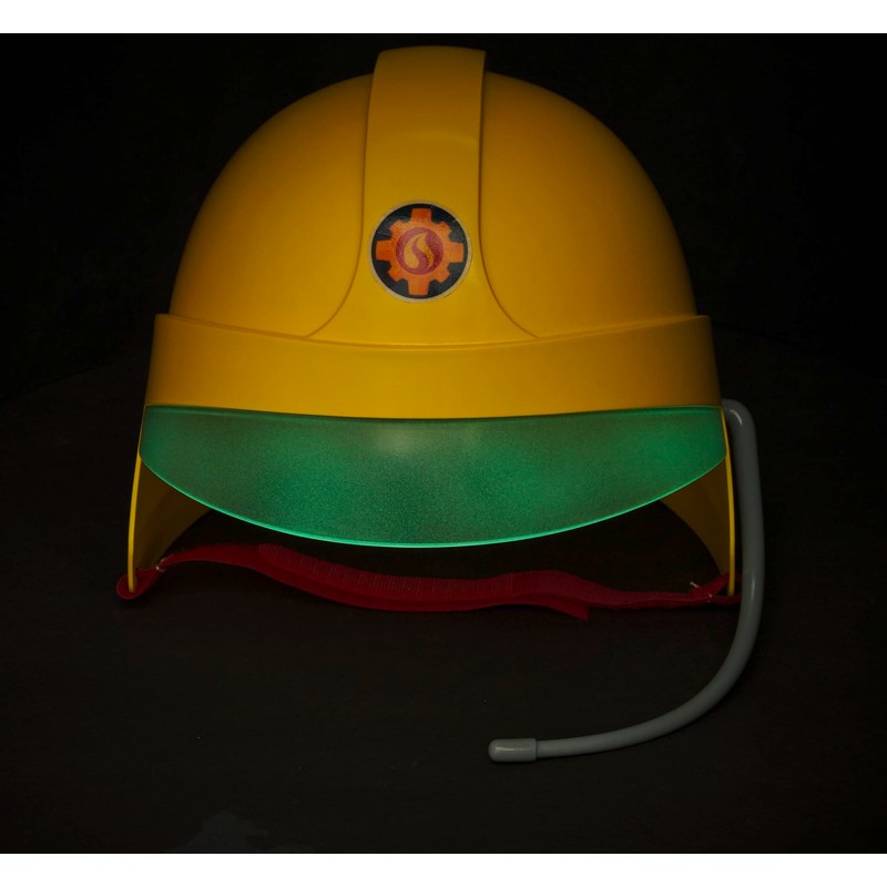 - The cool Fireman Sam helmet is rounded off with the fire brigade symbol of the dreamy city of Pontypandy and a toy microphone on the left side of the helmet. Glow in the dark the visor and visibility stickers on the back of the helmet.