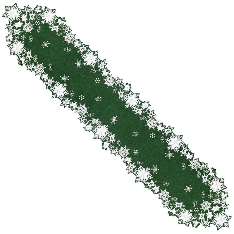 Simhomsen Embroidered Green Snowflakes Table Runner for Christmas Holidays (14×69 inches)