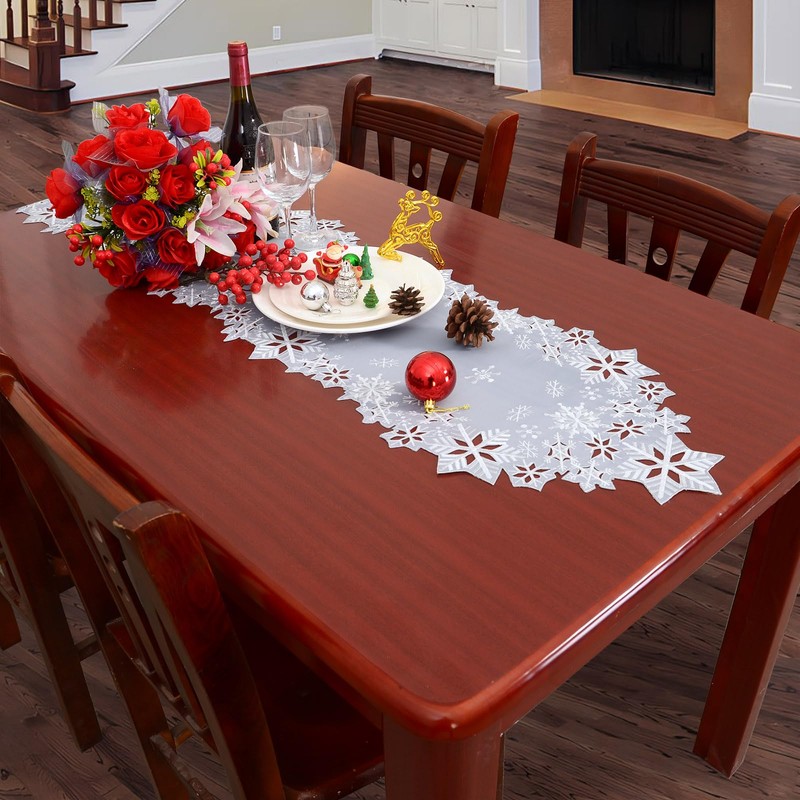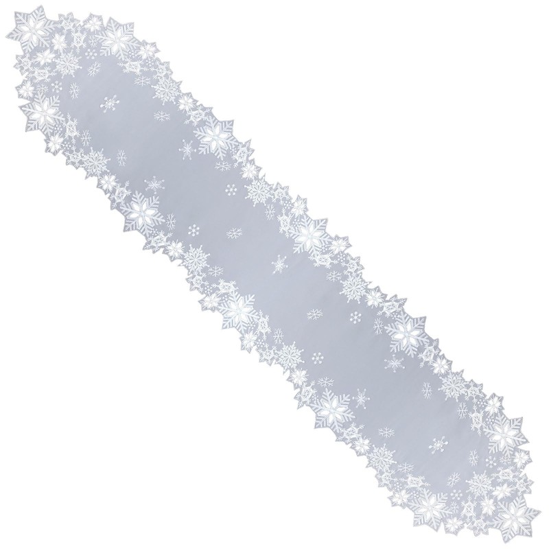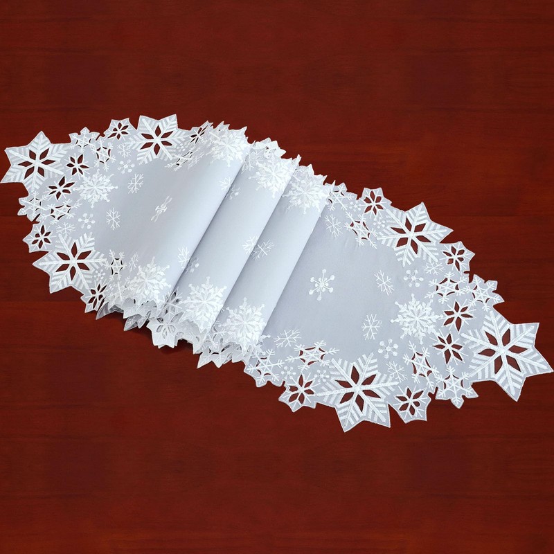 Simhomsen Embroidered Silver Grey Snowflakes Table Runner for Christmas Holidays (14×69 inches)