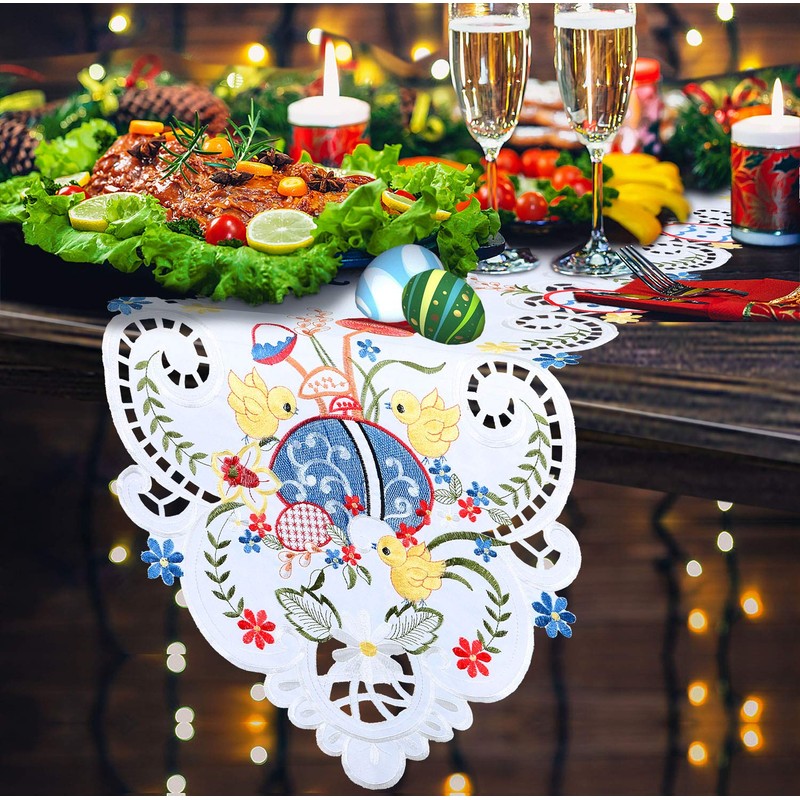 Simhomsen Embroidered Small Chicks Square Tablecloth for Easter Holiday or Spring Season(33 x 33 inches)