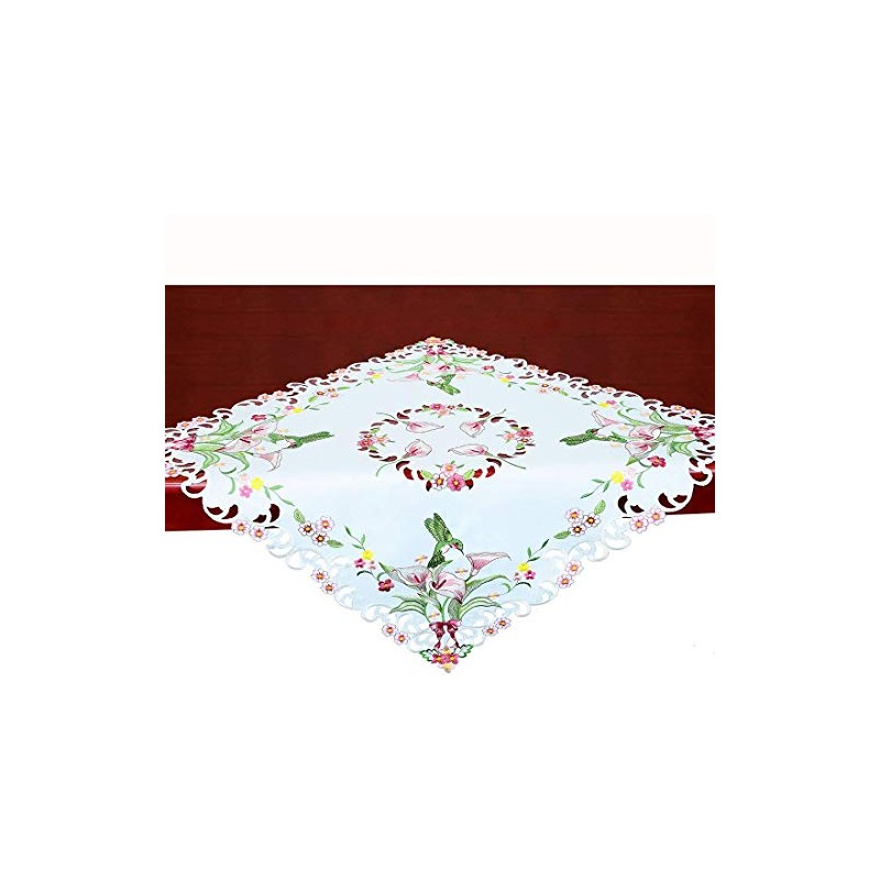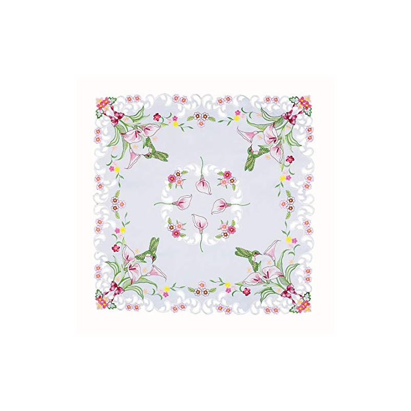 Simhomsen Embroidered Small Square Hummingbird Tablecloth, Topper, Table Cover for End Table, Tea Table, Coffee Table and Nightstand (33×33 inch)