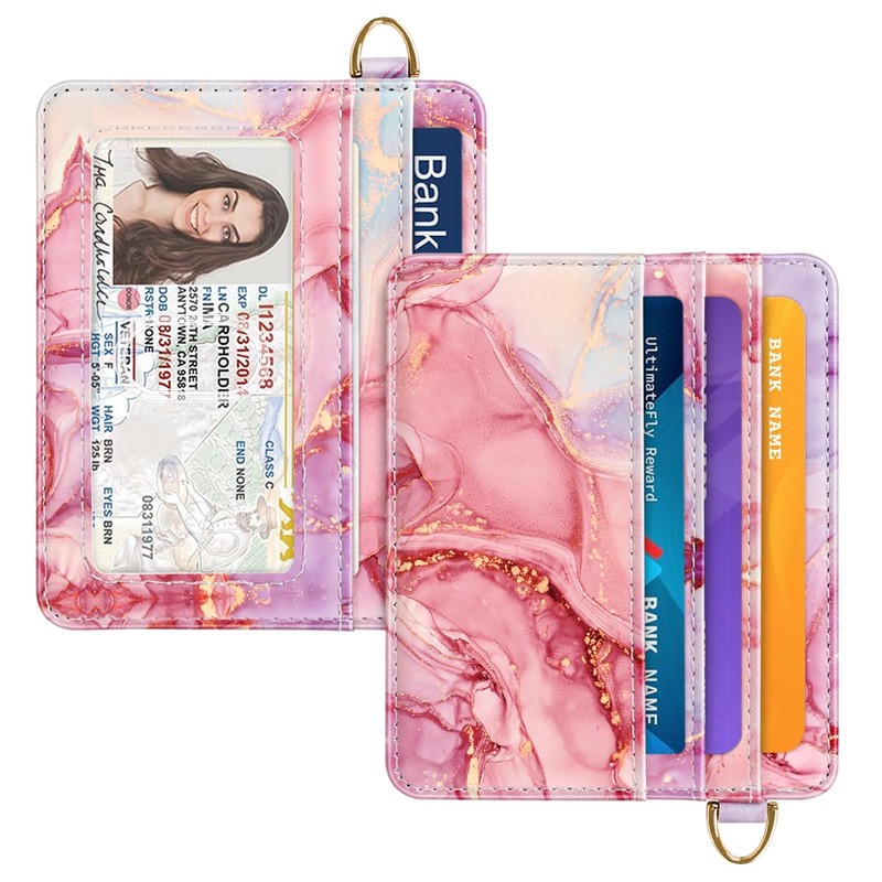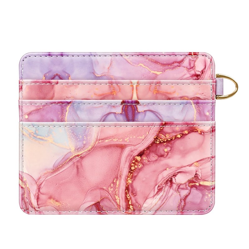 Simikol Slim Minimalist Front Pocket RFID Blocking Credit Card Holder Small Wallet Cute Card Cases for Women, Red Marble, Minimalist