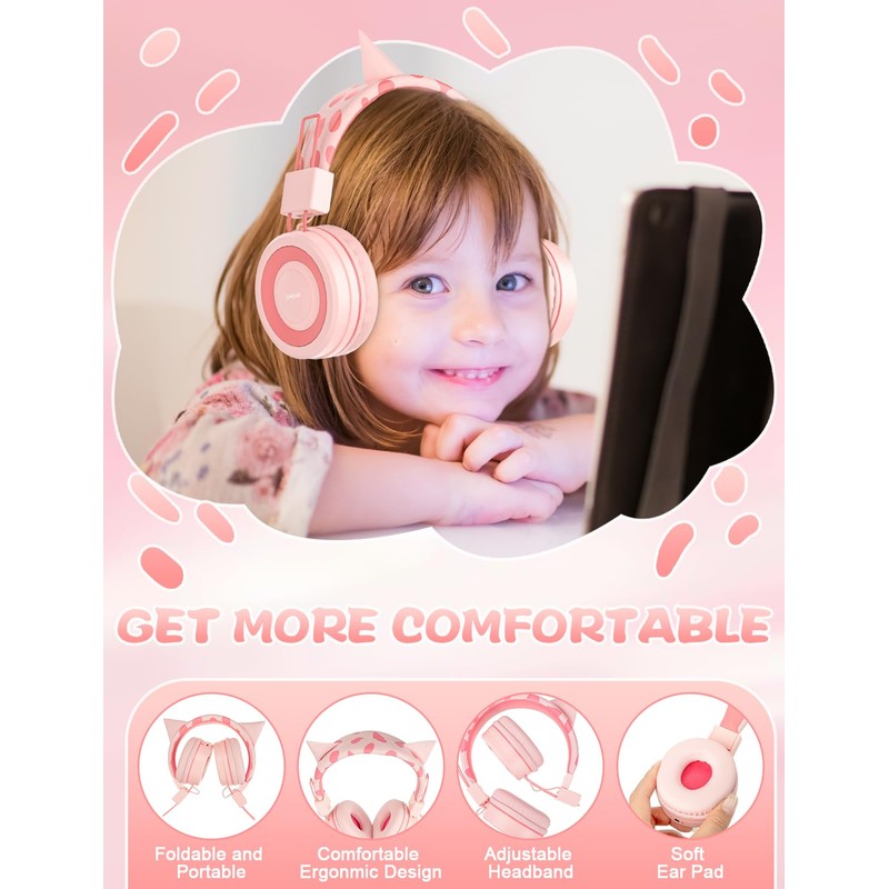 - Comfortable & Foldable(Easy to carry and storage): SIMJAR on-ear cat headphones have super soft and breathable ear cushions, which can make better isolation from ambient noise and good breathability