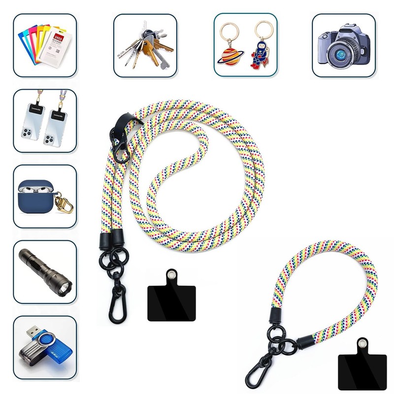 Simllyda Universal Mobile Phone Chain, Pack of 2 Chains for Hanging Around Neck and Wrist, Smartphone Chain for On the Go, Universal Mobile Phone Chain in 4 Different Designs (Rainbow)