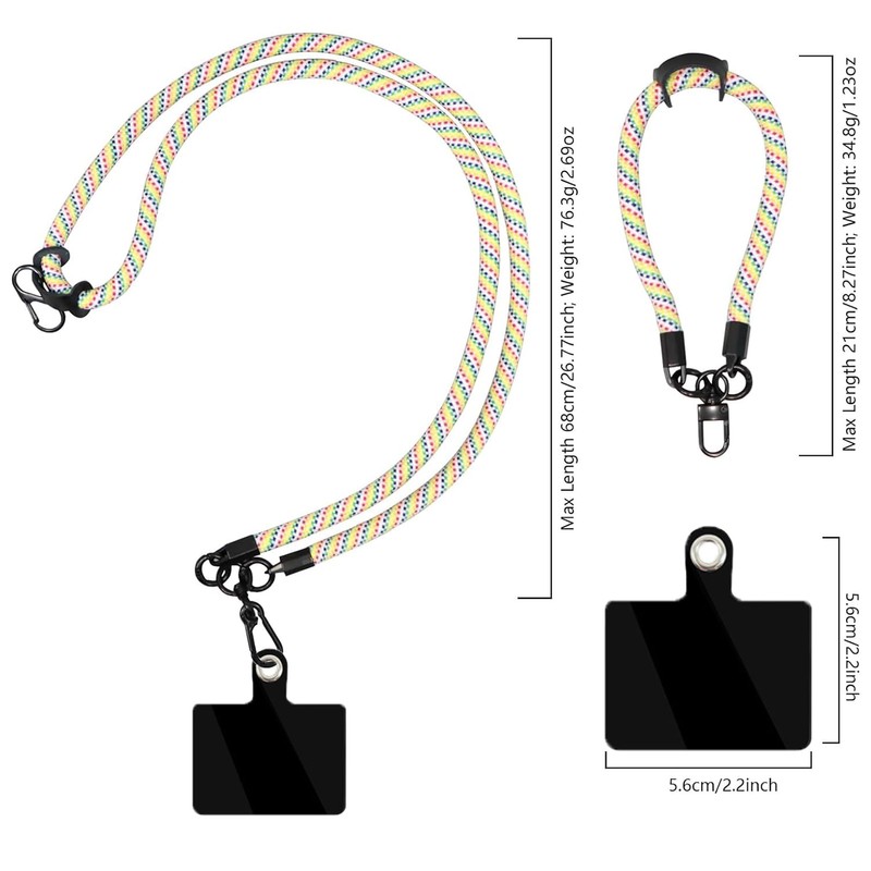 • Box contents: we have a crossbody strap (length up to 62 cm/24.4 inches) and a wrist strap (length up to 20.5 cm/8.07 inches), two TPU mobile phone patches.