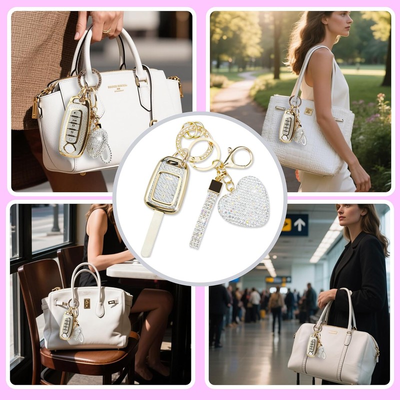 Built-in Special Texture & Delicate Keychain: The gold car key shell has snowflake texture inside that make your car key shining, elegant and unique. The button patterns stay clear and easily readable even after long time usage. Moreover, we offer a delicate keychain that is convenient for you to carry car key to anywhere.