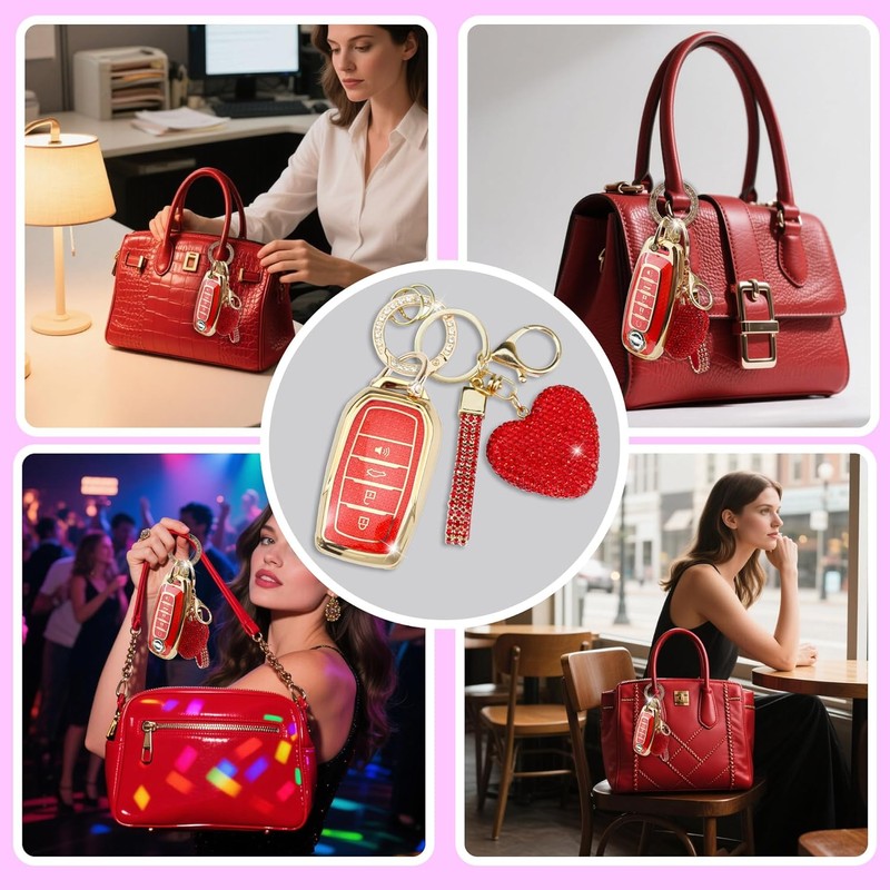 Built-in Special Texture & Delicate Keychain: The red car key shell has snowflake texture inside that make your car key shining, elegant and unique. The button patterns stay clear and easily readable even after long time usage. Moreover, we offer a delicate keychain that is convenient for you to carry car key to anywhere.