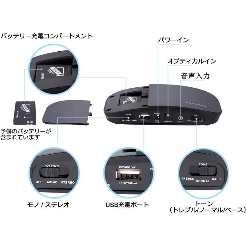 SIMOLIO Wireless Headphones for TV 2.4GHz No Audio Delay Digital RF Wireless Cordless Headphones Up to 30m Extra Battery with Transmitter and Mic Optical Digital, RCA/AUX