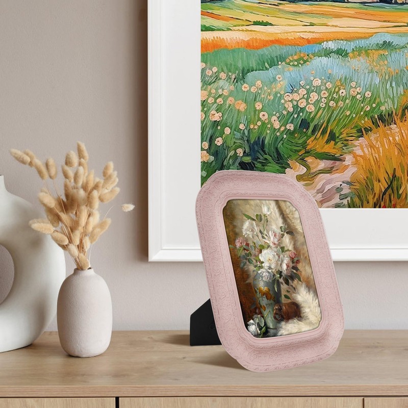 SIMON'S SHOP 5x7 Photo Frames in Pink Antique Ornate Picture Frames for Shelf Table Display Hangs Horizontally or Vertically