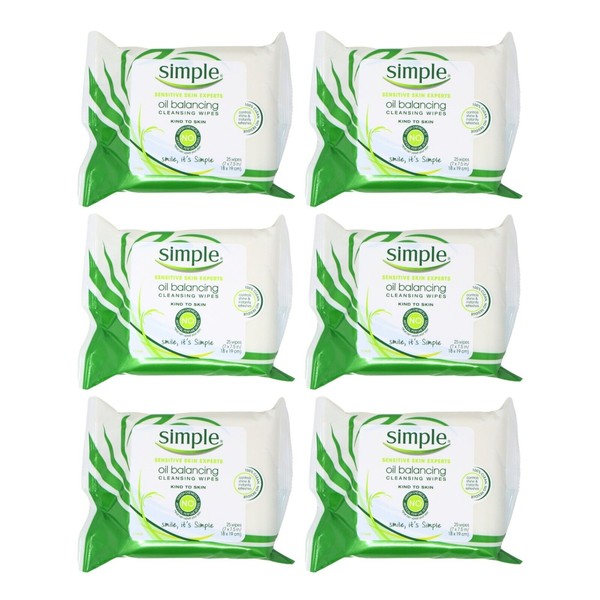 Simple 6 Pack - Simple Oil Balancing Cleansing Facial Wipes, 25 Count