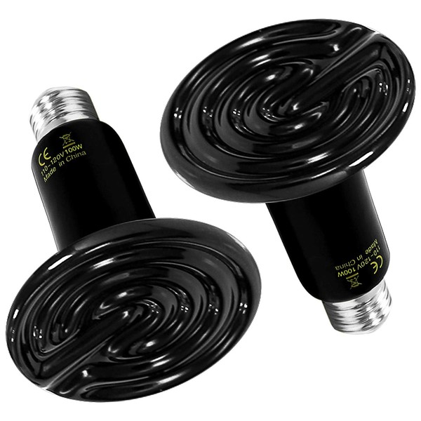 Simple Deluxe 100W 2-Pack Ceramic Heat Emitter Reptile Heat Lamp Bulb No Light Emitting Brooder Coop Heater for Amphibian Pet & Incubating Chicken
