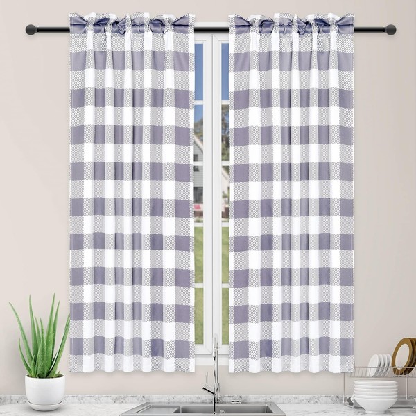 Simple Deluxe 2 PCS Buffalo Check Kitchen Tier Curtains, Plaid Gingham Short Curtain for Half Cafe Windows, 26" W x 45" L, White&Gray