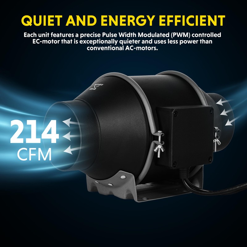 - Efficient Silence: 4-inch silent straight tube fan, adjustable frequency AC motor, operates at as low as 29 decibels, provides 214 cubic feet per minute airflow, energy-saving and low-power consumption at only 30 watts
