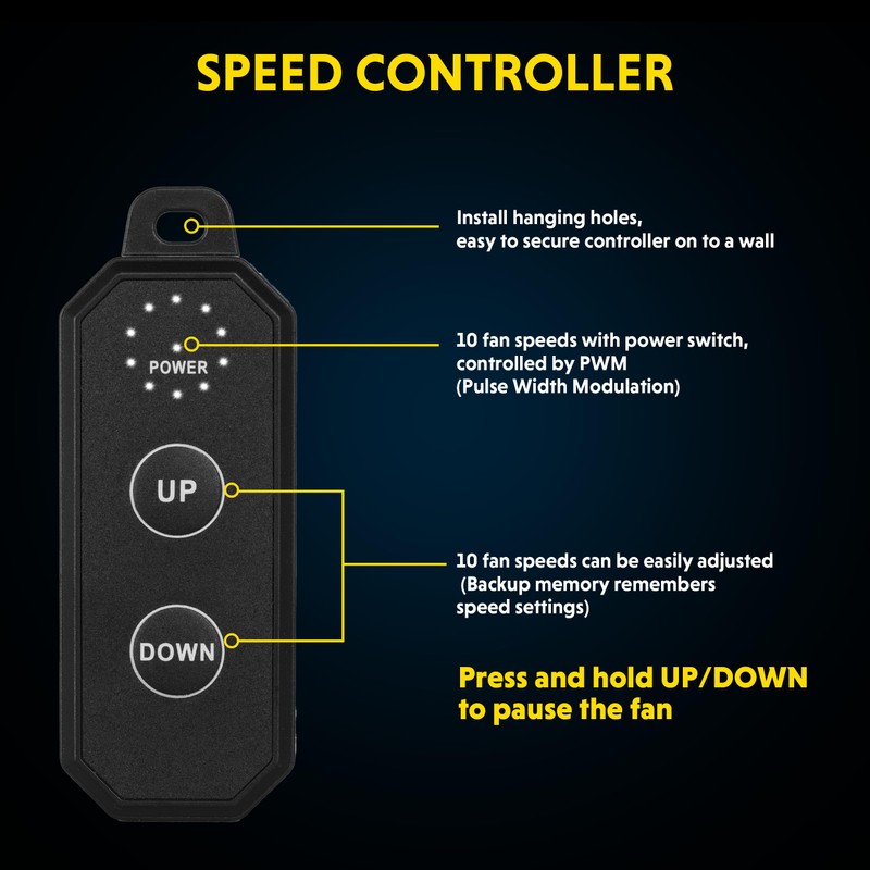 - Exquisite Design: Uses PWM control, paired with 10-speed wired controller, portable and compact design, suitable for space-constrained scenarios, saves installation space