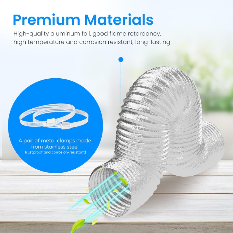 - Safe and Stable: The duct has puncture resistance with multiple thickened layers to ensure durability. The inner and outer layers are made of flame-retardant heavy aluminum foil to prevent pipe tearing.