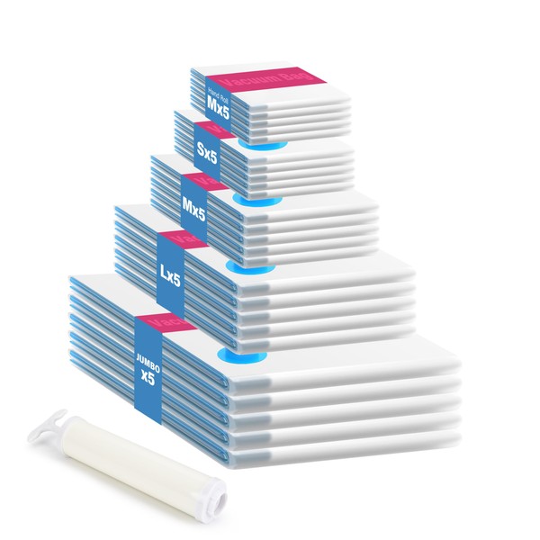 - 【Easy To Use & Store】: Insert items, seal, and vacuum. You can place the compressed vacuum bag at any angle from standing upright in the closet to lying it in the suitcase for easy packing.