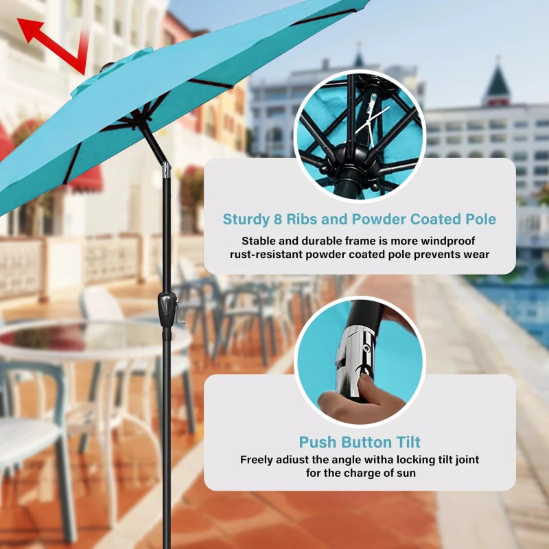 Simple Deluxe 9FT Outdoor Patio Umbrella 8 Ribs Table Umbrellas Push Button Tilt Turquoise