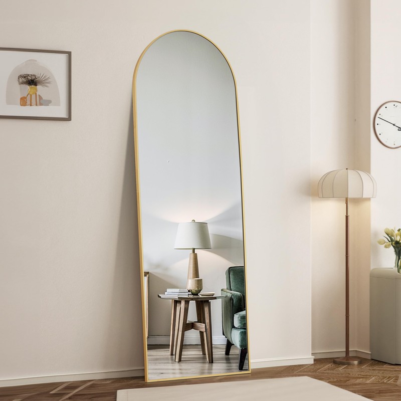 Simple Deluxe Arched Wall Mirror Full Length, 64"x21" Floor Mirror with Stand, Wall Mounted Mirror for Bedroom, Full Length Body Floor, Gold