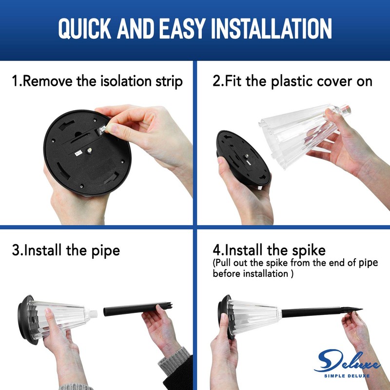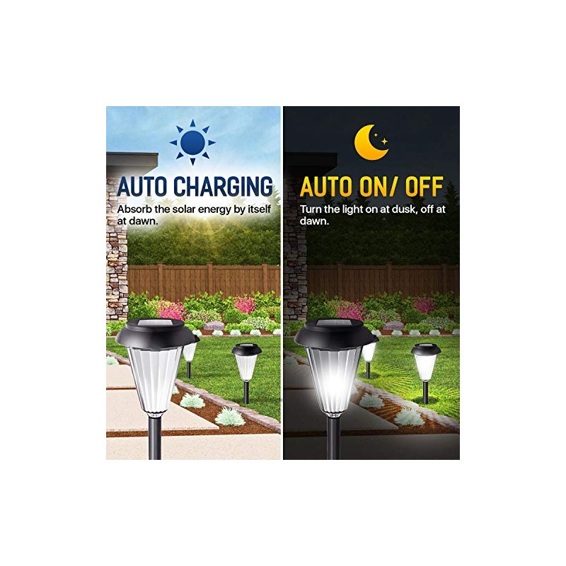 - Solar path light: No wiring, no tools, Easy to install, can be installed directly into the soil as needed. (Note: remove the battery insulation sheet before using For the first time).