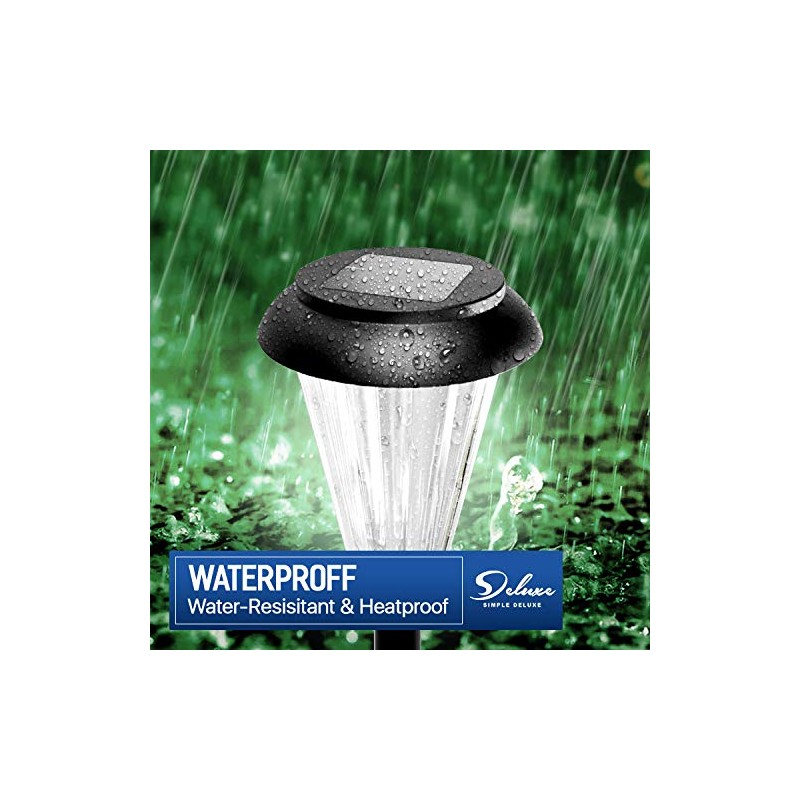 Simple Deluxe Solar Path Lights and Spot Lights: Produced with the best technology, high in quality and competitively priced, Simple Deluxe Solar Path Lights are the best choice for gardening enthusiasts and others alike. Its key features include solar auto operation, durable make, easy tool free installation and maintenance. These stylish looking lights emit 2 Lumen brightness light and will improve visibility as well as the overall look of your garden and pathways. Specifications: Material: Plastic Battery: 1. 2V, 300mAh Rechargeable battery Solar panel: Monocrystalline Silicon Working time: 8 hours and more after full charge (10-12 hours of sufficient lighting)Color temperature: 4600-5600 Waterproof : Yes Dusk to dawn: Yes