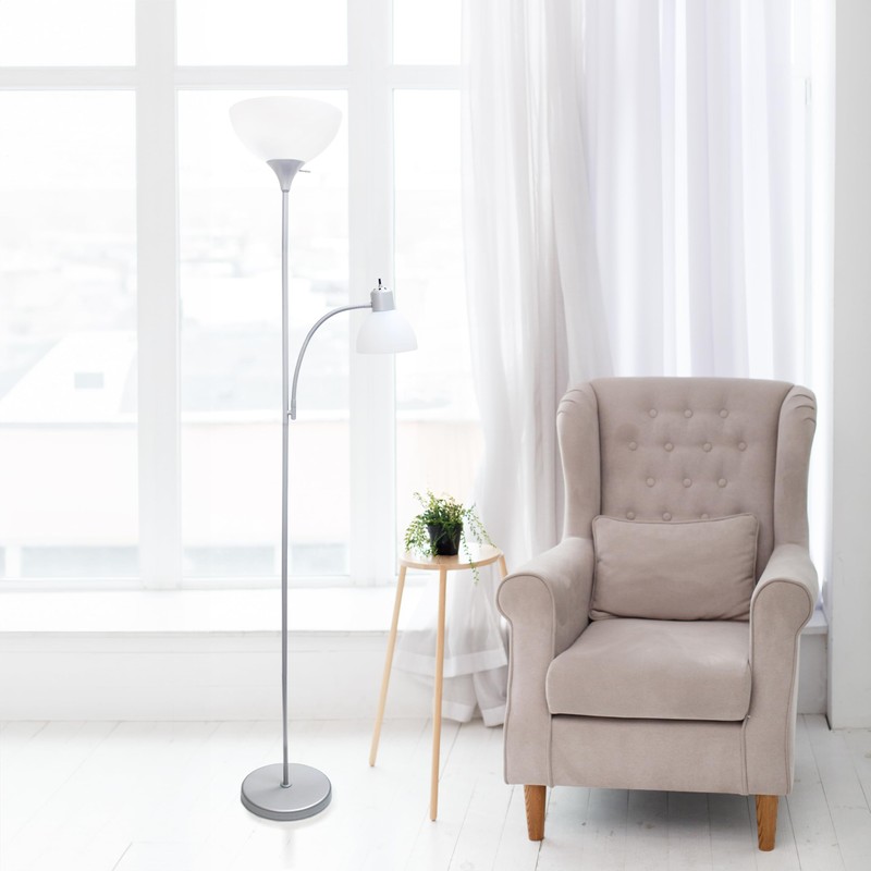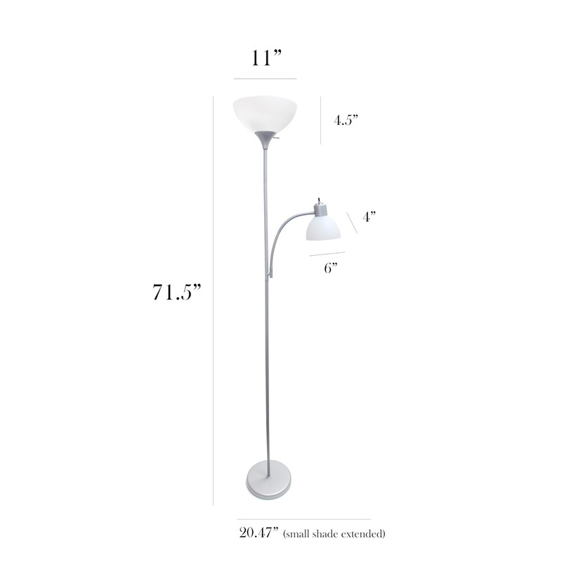 Simple Designs LF2000-SLV-LB 71.5" Traditional Floor Lamp with Adjustable Reading Light, LED Bulbs Included, Silver