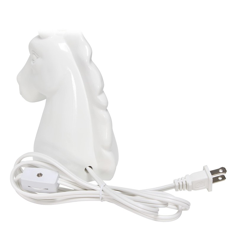 • Unicorn's horn and neck of lamp coated in shimmering rainbow glitter