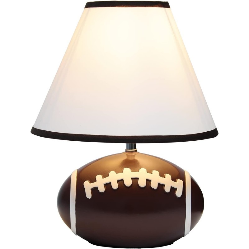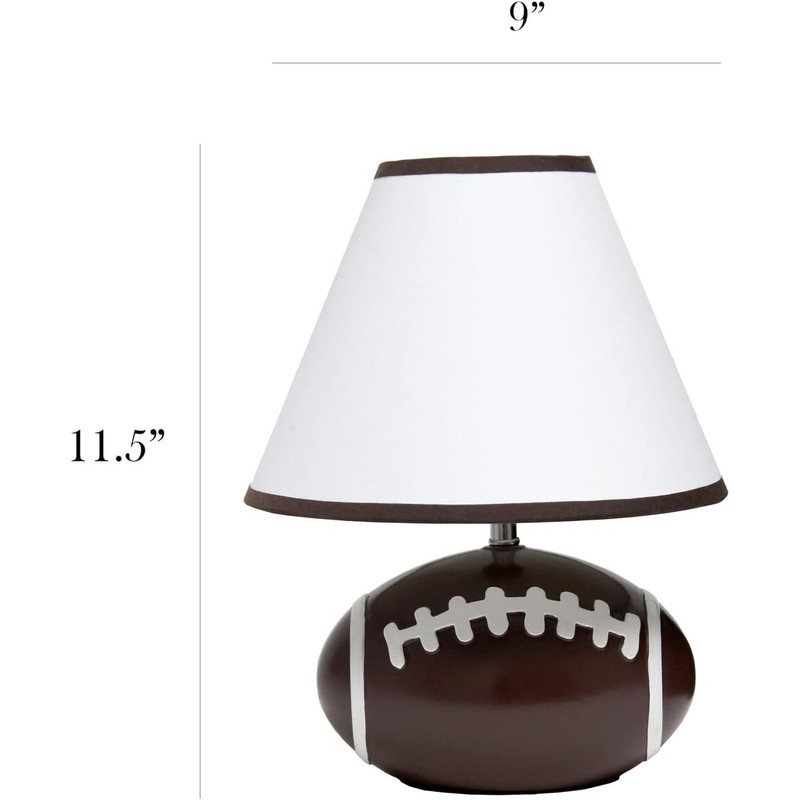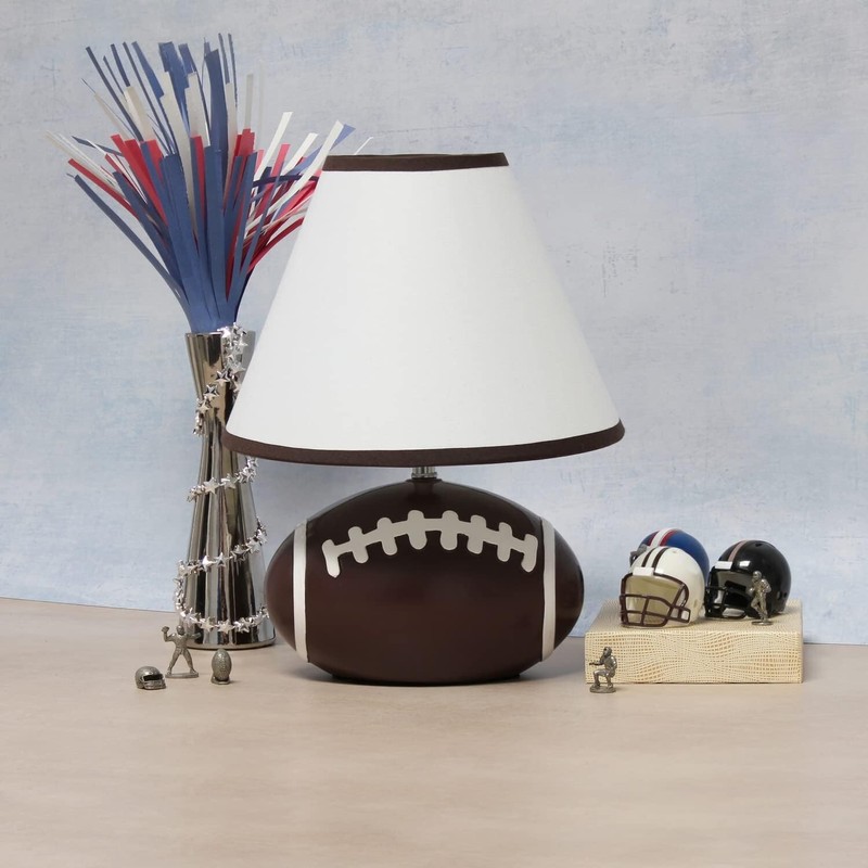 - FUN SPORTS STYLED LAMP: A neutral lamp to accommodate all football teams' décor, memorabilia spaces, man cave rooms, and more! This lamp features a realistic football shaped base with a matching brown trim and white fabric shade.