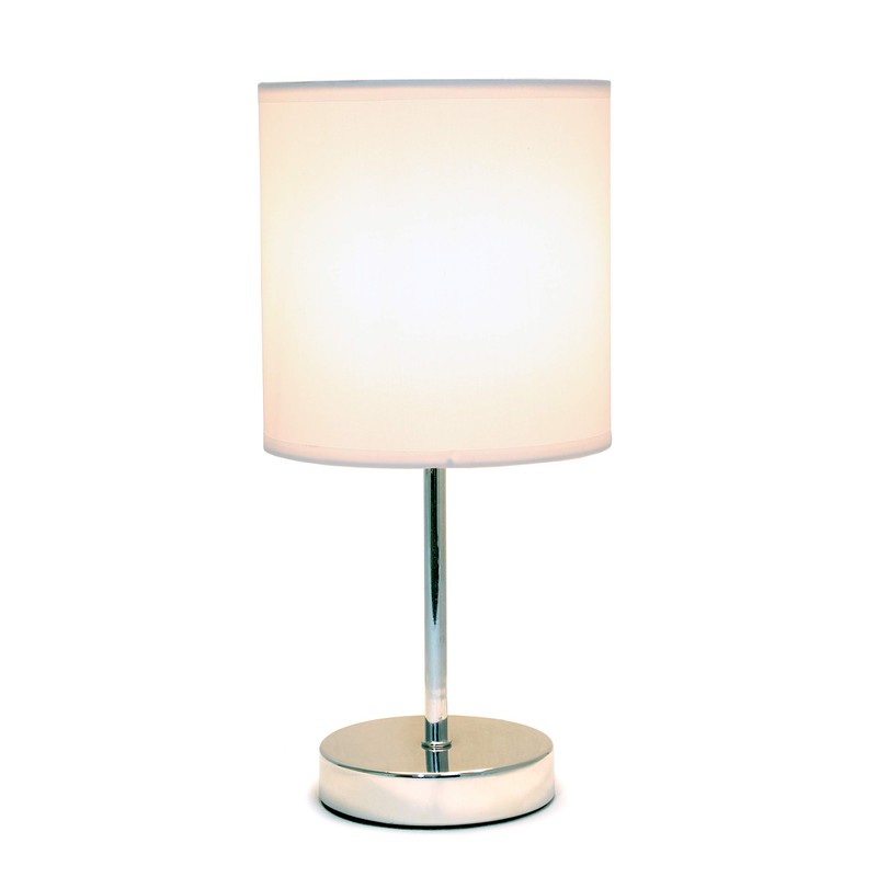 Simple Designs LT2007-WHT Chrome Mini Basic Table Lamp with Fabric Shade, White