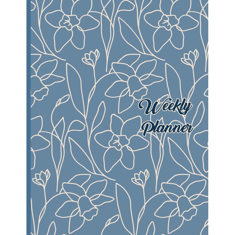 Simple Floral Design On Blue Background: Undated Weekly Planner
