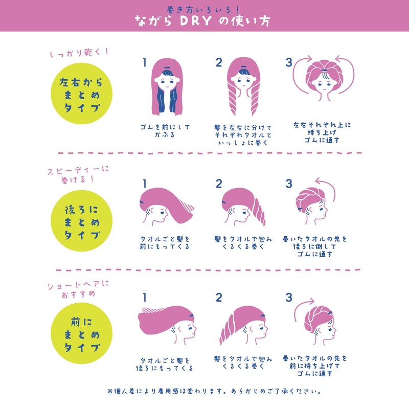 - [While Towel Dry] For those who want to dry hair after the bath with a little ease. You can wrap it around your head like a turban so you can towel dry it while doing what you like