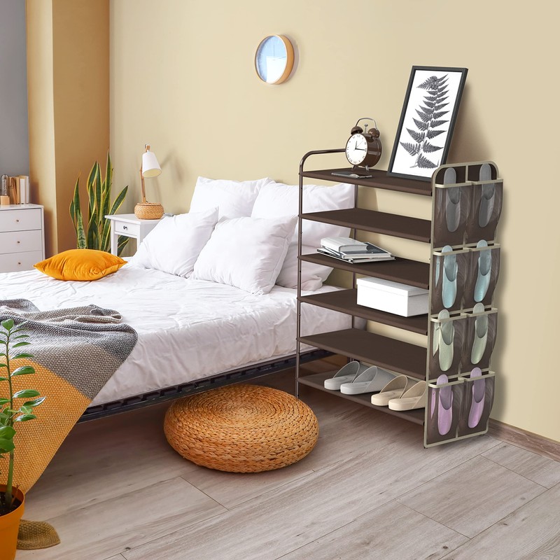 - Stores up to 18-28 pairs of shoes, Additional bottom storage for slippers, a 4-pairs side pockets organizer included.