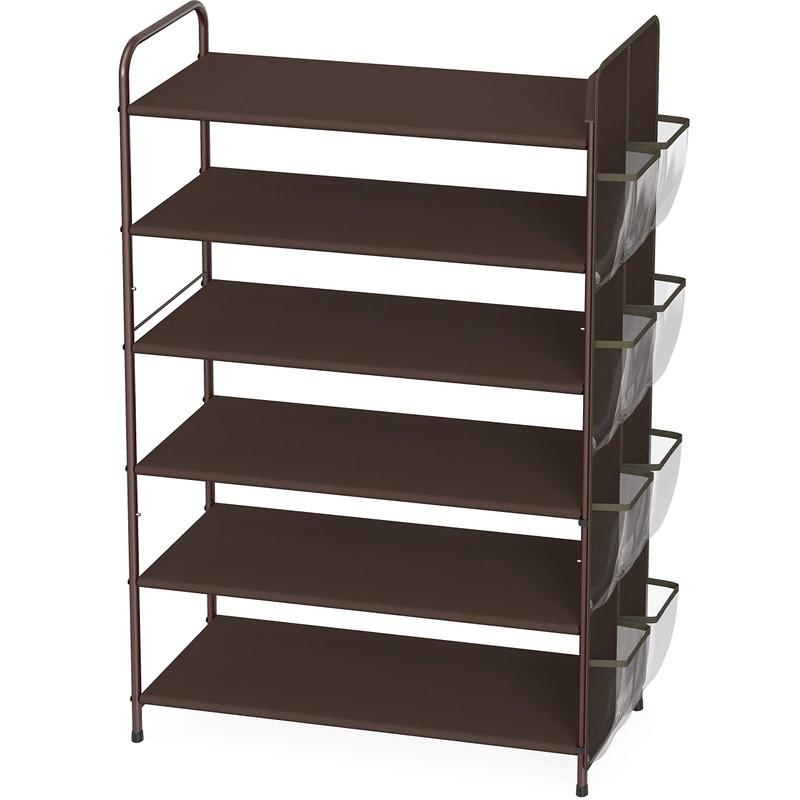 Simple Houseware 6-Tier Shoe Rack Storage Organizer w/Side Hanging Bag, Bronze