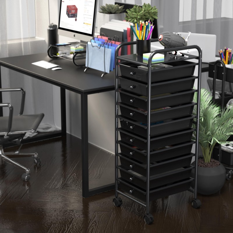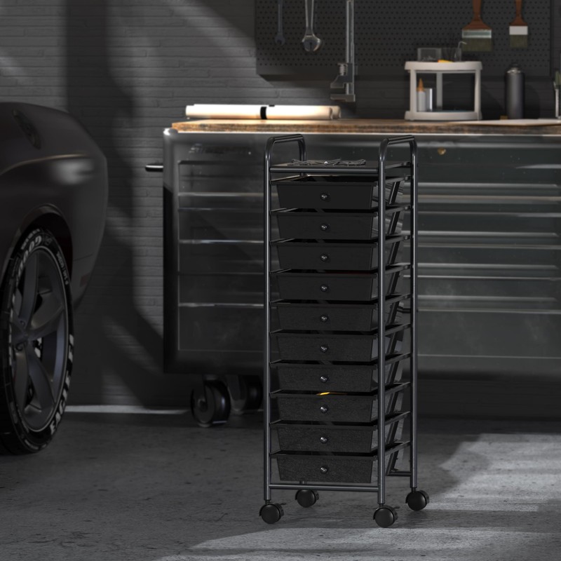 - Heavy-duty 10 Drawer rolling utility cart for storage and saving space.