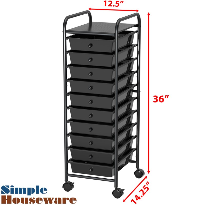 Simple Houseware Simple Houseware Utility Cart with 10 Drawers Rolling Storage Art Craft Organizer, Black